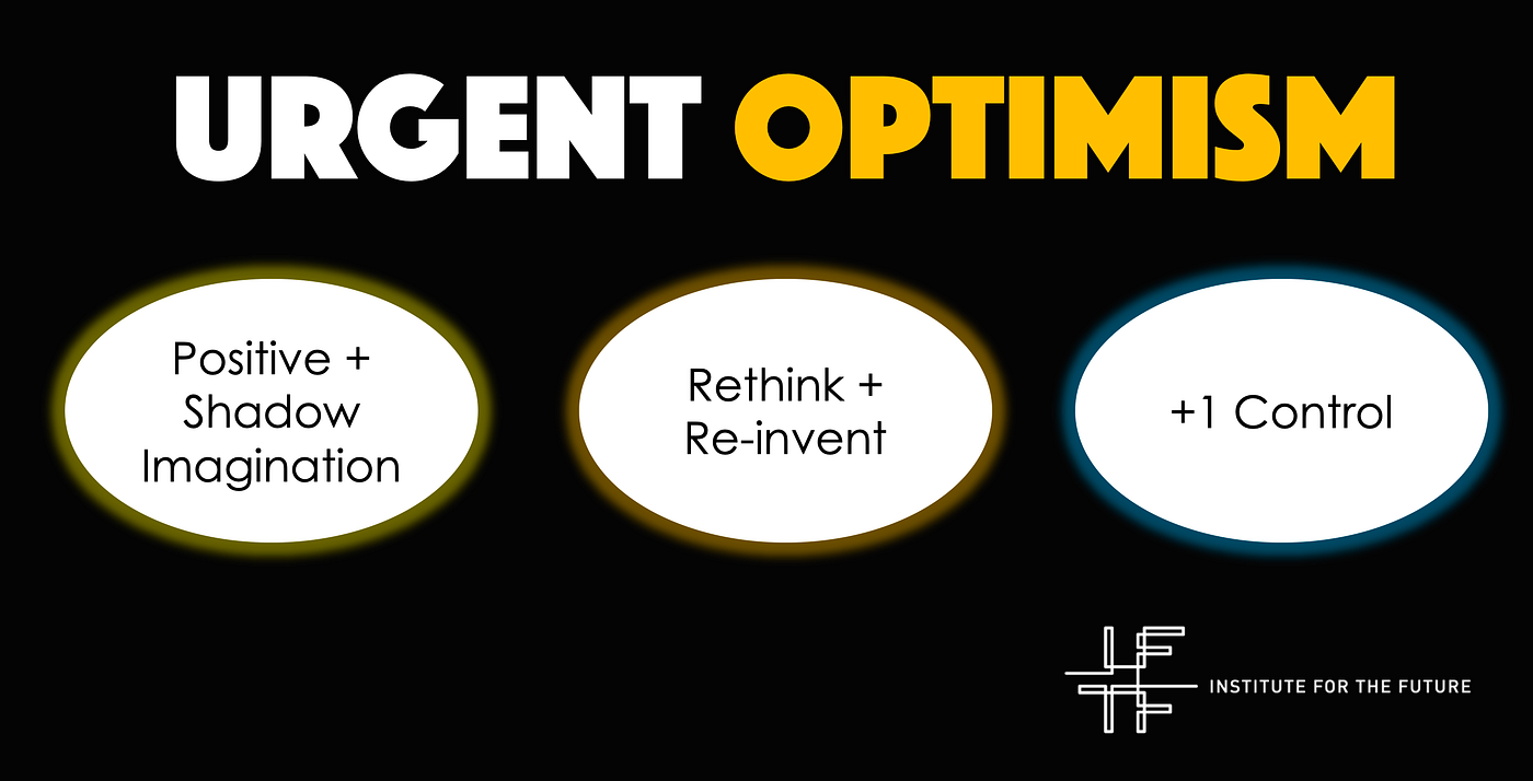 If you add all 3 of these mini-mindsets up — using both positive and shadow imagination, focusing on the opportunity to rethink and re-invent, and looking for actionable ways to increase your ability to shape the future by at least +1, you get what I believe will be the biggest take-away you’ll have from adopting a post-pandemic mindset. It’s what I call urgent optimism.