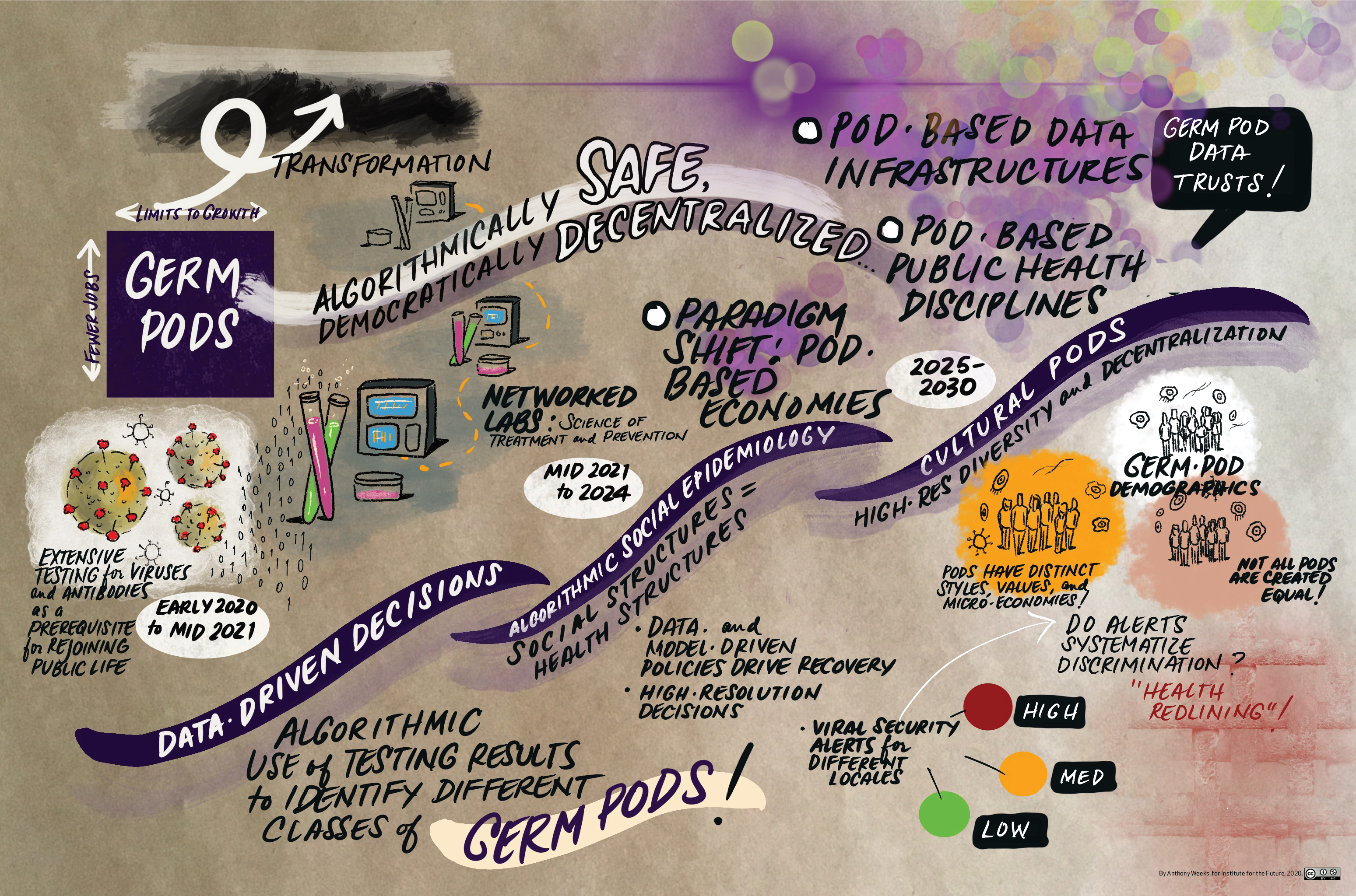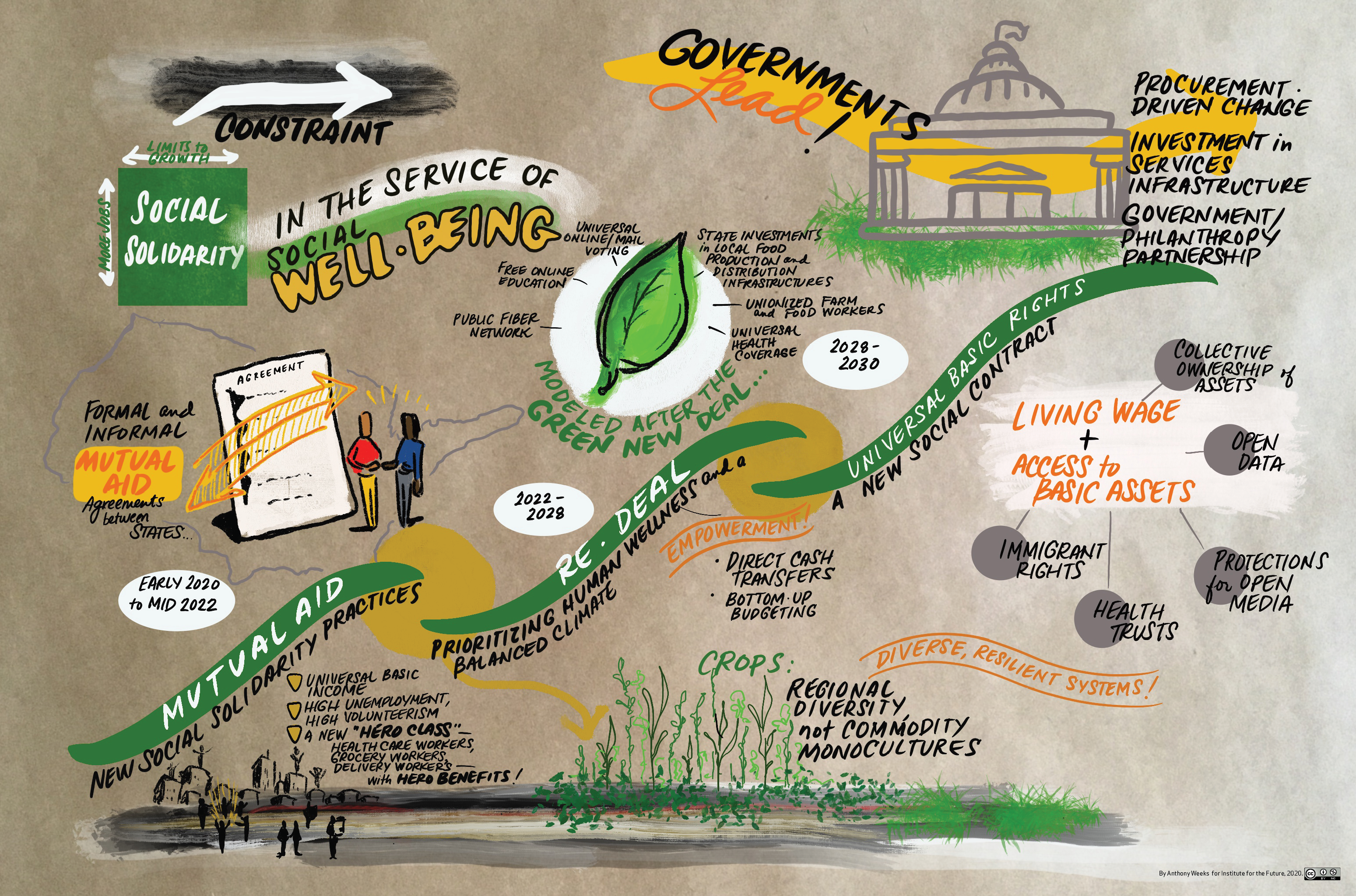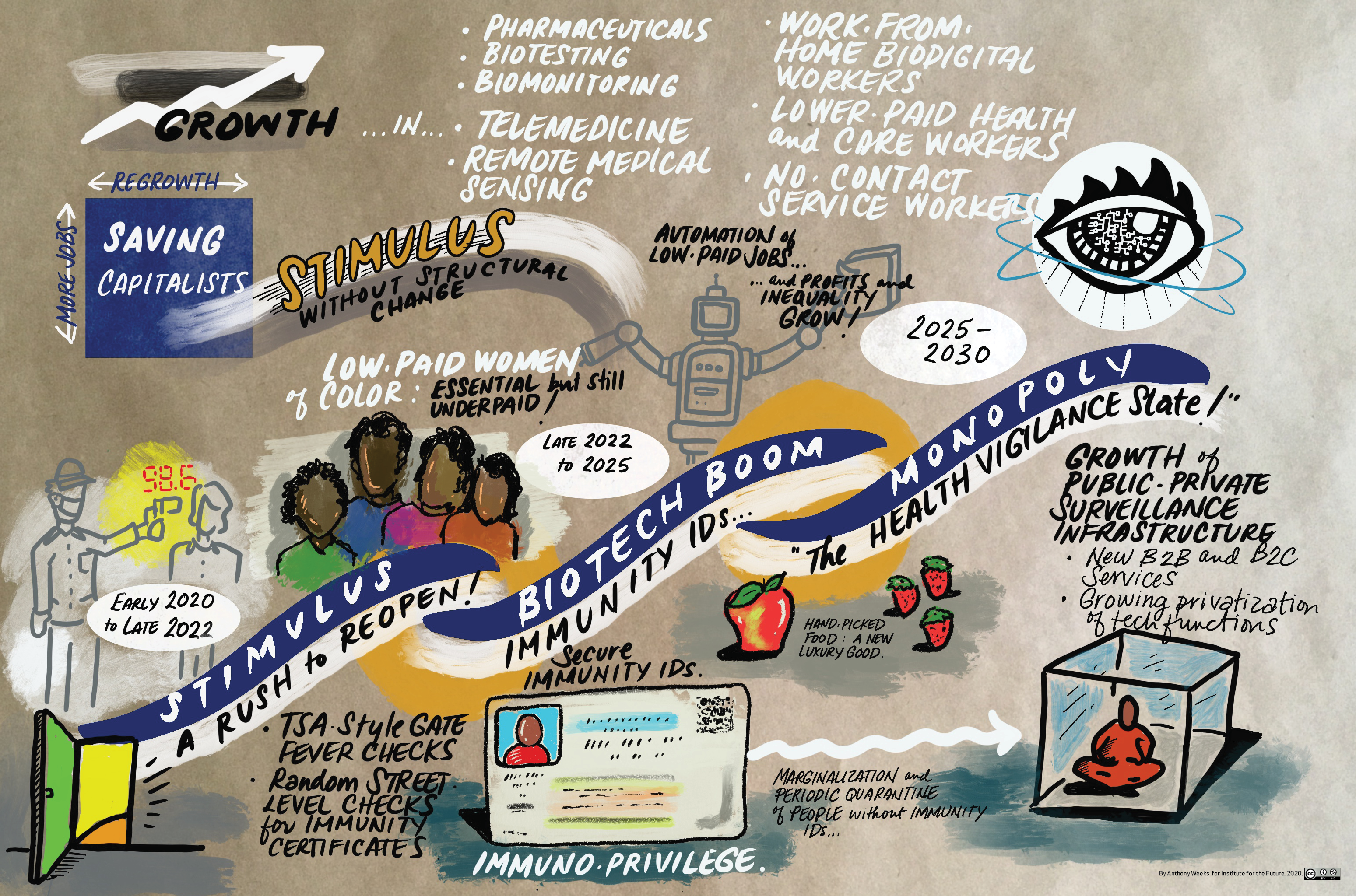 Here’s a preview of the basic steps and some sketches of four alternative futures that the Institute for the Future will be using over the coming months to catalyze the insights of frontline workers, community voices, academic thought leaders, and policymakers.