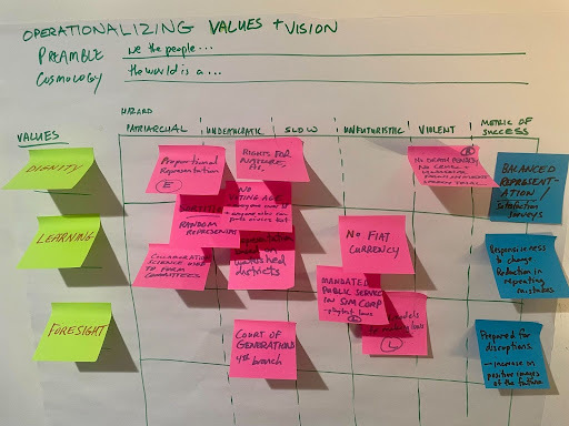 Demo of the Operationalizing Values and Vision Framework. Image by Jake Dunagan.