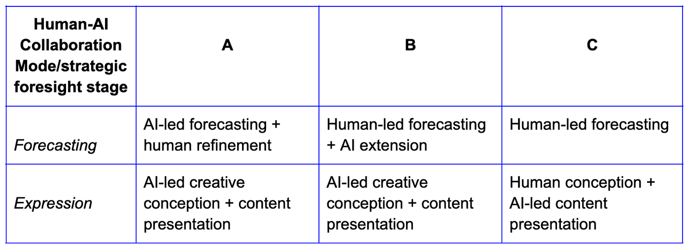 - To our surprise, generative AI can be very imaginative and creative in forecasts and making future narratives. It makes us consider t the role of professional futurists in the future of human-AI collaboration.