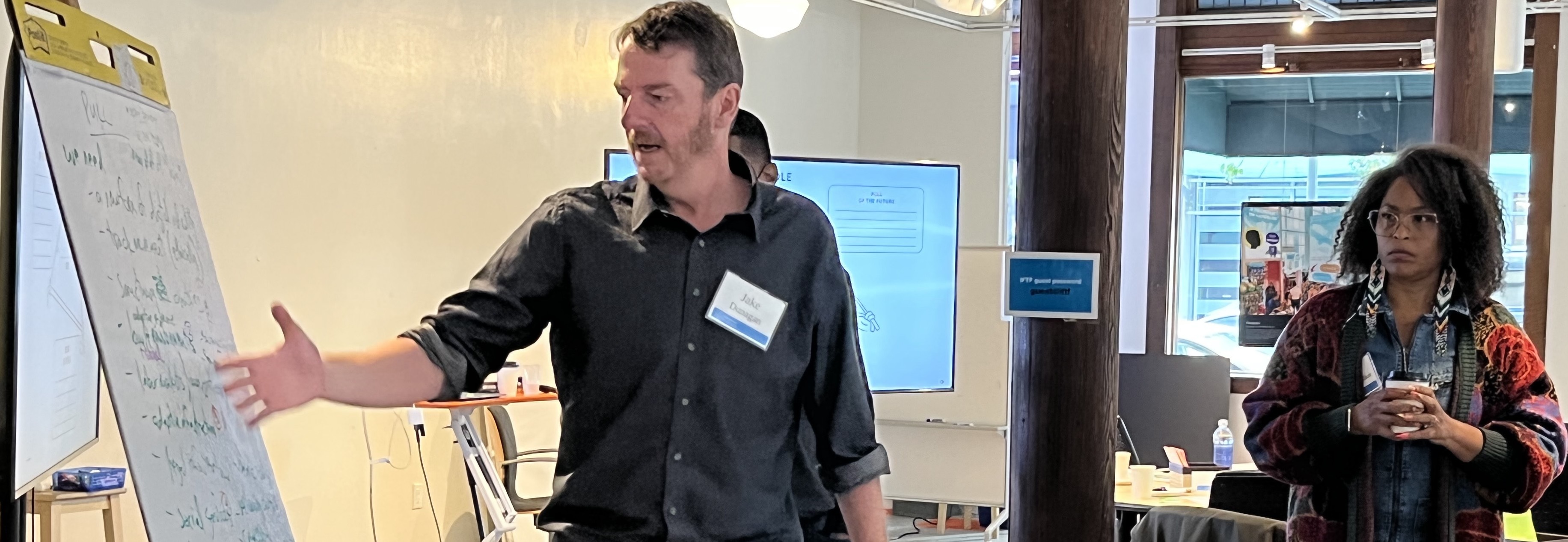 IFTF Design Futures founder and facilitator Dr. Jake Dunagan leads a room of participants at the Institute in Palo Alto.